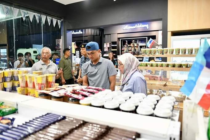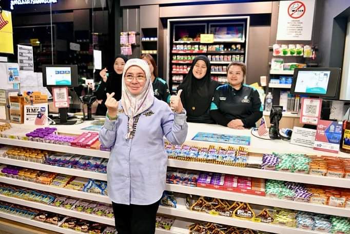 Seri Paduka Baginda berdua bersama paduka-paduka anakanda turut berkesempatan membeli makanan di kedai serbaneka stesen minyak tersebut.