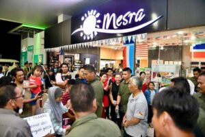 Seri Paduka Baginda berdua juga berkenan meluangkan masa menyantuni penduduk setempat, yang teruja menantikan ketibaan rombongan Kembara Borneo, di stesyen minyak itu.