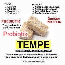 Tempe kaya dengan prebiotik dan probiotik, serat, protein, malah boleh membantu mengurangkan kolesterol LDL-typeB.