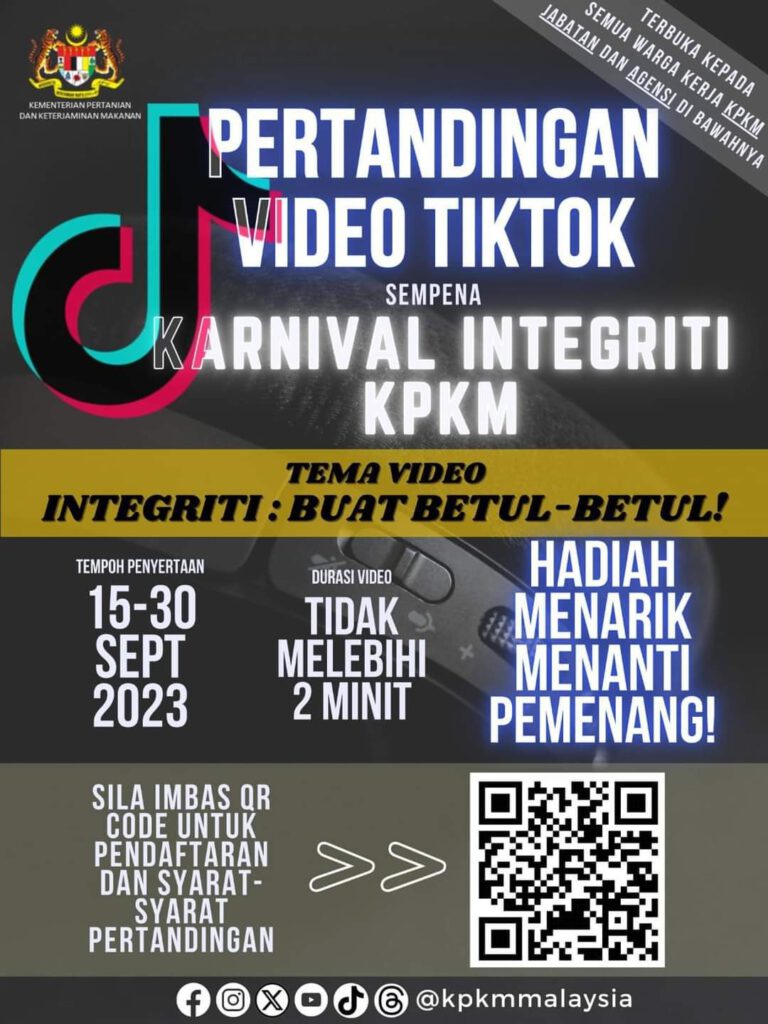 Jom serlahkan bakat anda dengan menyertai Pertandingan Video Tiktok Sempena Karnival Integriti KPKM dengan tema Integriti : Buat Betul-betul!