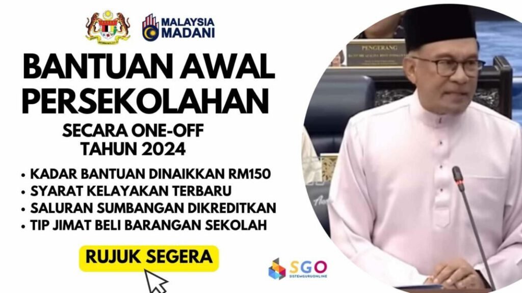 Untuk bantuan awal persekolahan 2024 diberikan kepada murid-murid dari Tahun 1 hingga Tingkatan 5 atau yang berkenaan, terutamanya kepada keluarga yang berpendapatan isi rumah kasar RM3,000.00 atau kurang.
