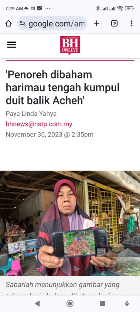 Bukti tindakbalas Harimau Malaya telah berlaku di Jeli Kelantan pada 29 November 2023.