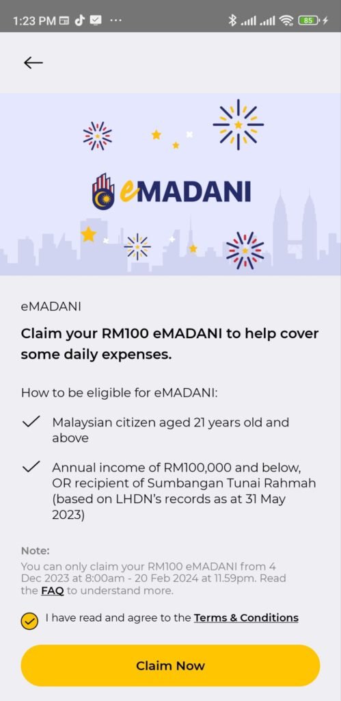 Tarikh akhir Permohonan kredit eMADANI 20 Februari 2024.