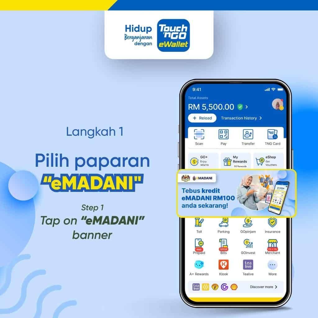Kaedah penebusan emadani melalui Touch n Go (TNG) seperti berikut: