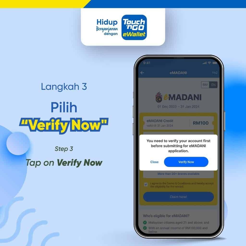 Pastikan anda boleh logmasuj & sahkan eWallet untuk tebus kredit eMADANI RM100 & banyak lagi ganjaran pada hari Isnin, 4 Disember 2023 nanti.