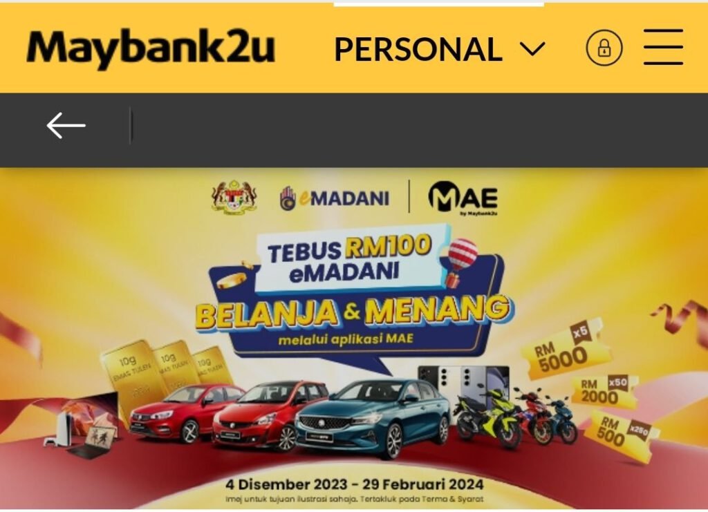 Anda hanya perlu menebus dan membelanjakan RM100 eMADANI anda dengan aplikasi MAE!