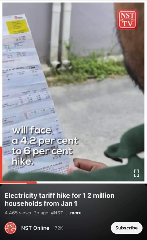 Mereka dengan bil elektrik RM220.36 sekarang akan mengalami kenaikan 5.5% atau RM12.02 ke RM232.38
