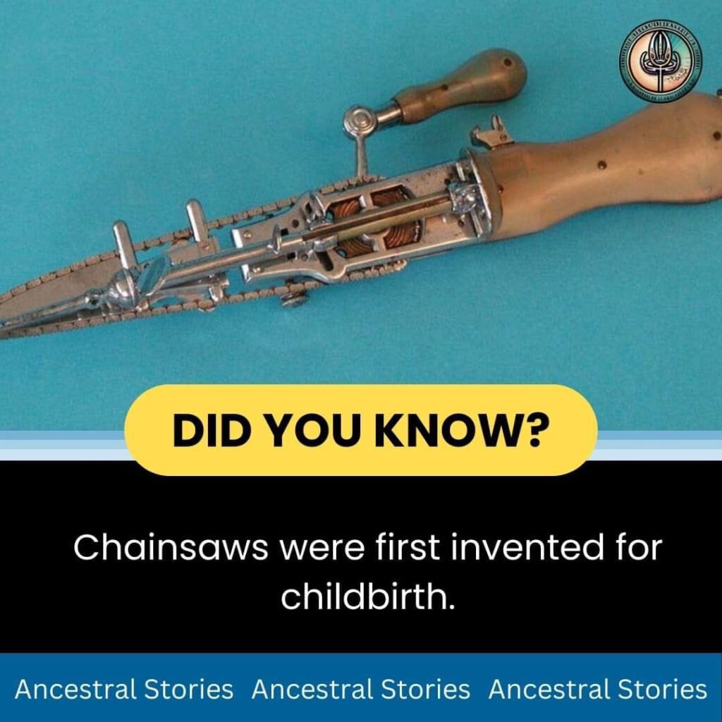 Mengejutkan Gergaji rantai , yang sering digunakan untuk menebang pokok dan memotong kayu, sebenarnya dicipta bukan untuk tujuan tersebut , tetapi sebagai alat bantu bersalin ketika wanita ingin melahirkan anak.