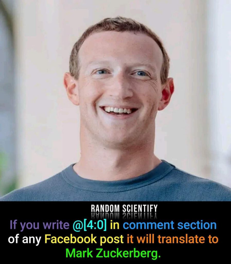 Menaip @[4:0] dalam ulasan Facebook sememangnya akan menandakan Mark Zuckerberg.