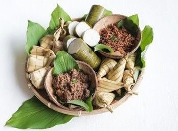 Ketupat, lemang dan nasi impit menjadi hidangan pagi raya yang popular sambil menghirup air kopi atau teh.