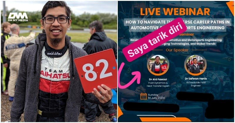 Menerusi satu hantaran di Facebook, Dr Aid Fawzal memaklumkan kepada pengikutnya dia telah menarik diri dari satu program webinar berkaitan automotif. Pakar automotif itu tarik diri dari webinar berbayar .
