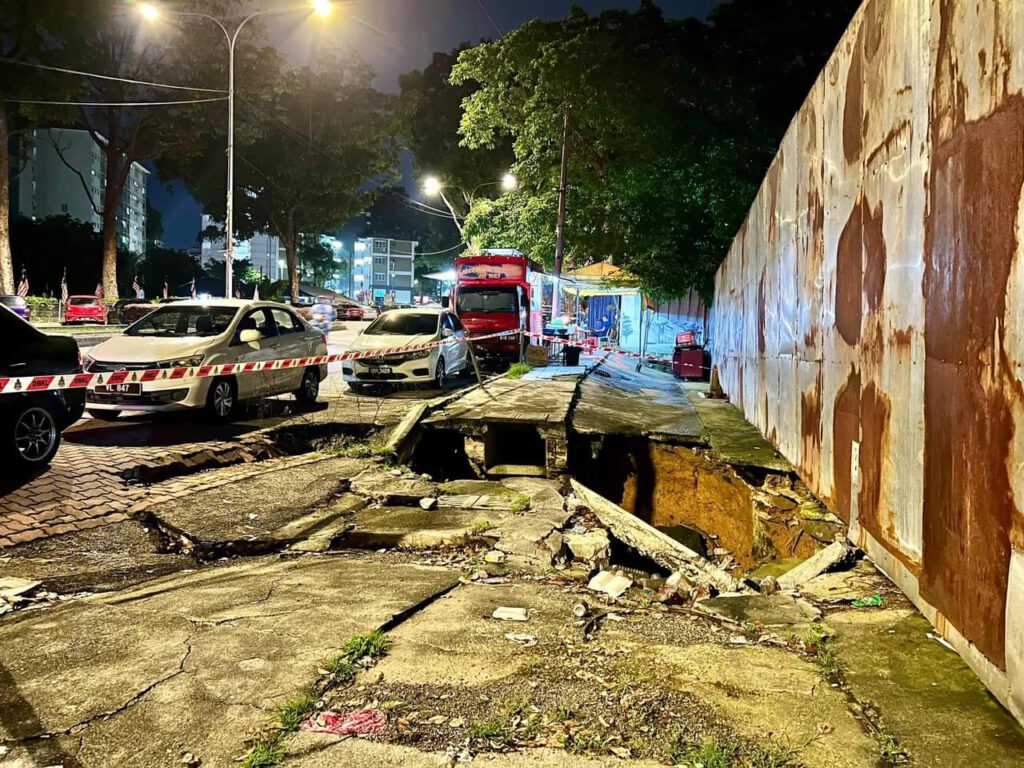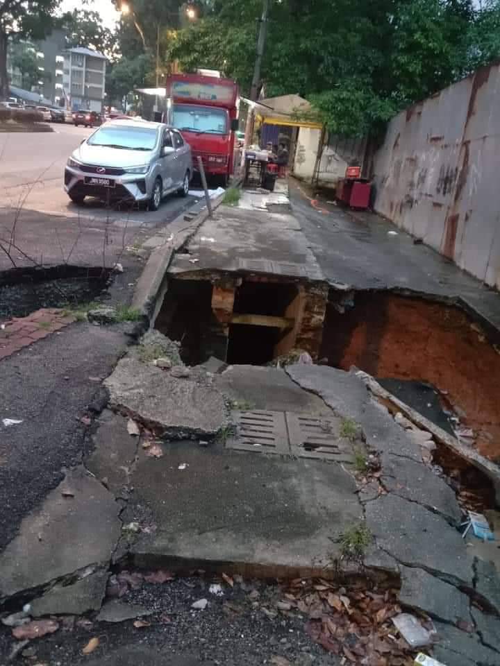 Sebuah longkang telah runtuh di Kg Kerinchi, meninggalkan satu lubang besar. — Gambar dari Facebook/DBKL Selasa, 27 Ogos 2024 3:35 PTG MYT