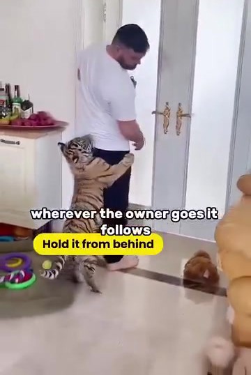 Dia sering mendakapnya untuk menenangkan anak harimau yang masih kecil dan rapuh. Ketika mandi, anak harimau itu kelihatan sangat patuh, malah menyerupai bayi manusia, siap menghisap jarinya dengan manja.