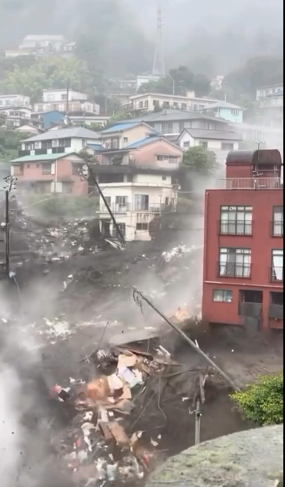 Gambar diatas menunjukkan kesan kemusnahan besar akibat banjir lumpur dan tanah runtuh di kawasan perumahan.
