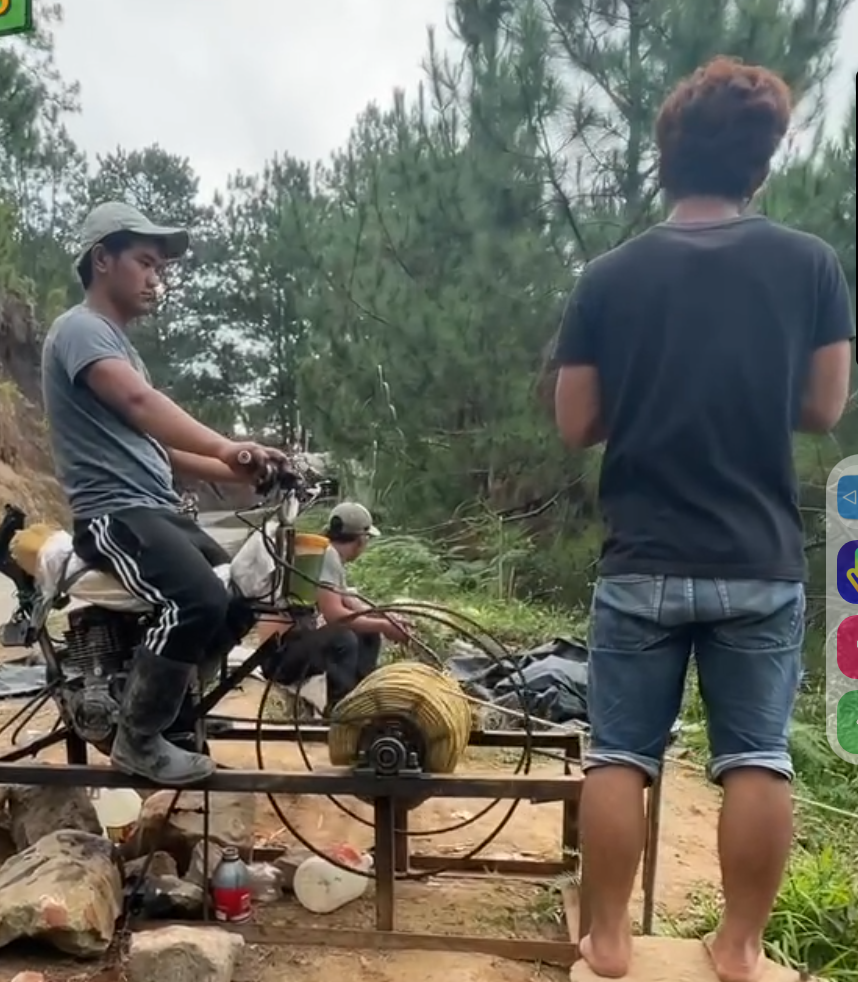 Kejuruteraan Kreatif: Sistem Tram ini dibina dengan memanfaatkan enjin motosikal membekalkan kuasa menggerakkan sistem kabel yang kuat, di mana hasil pertanian diangkut melalui bakul yang digantung pada kabel tersebut.