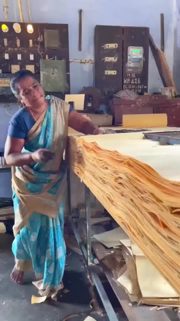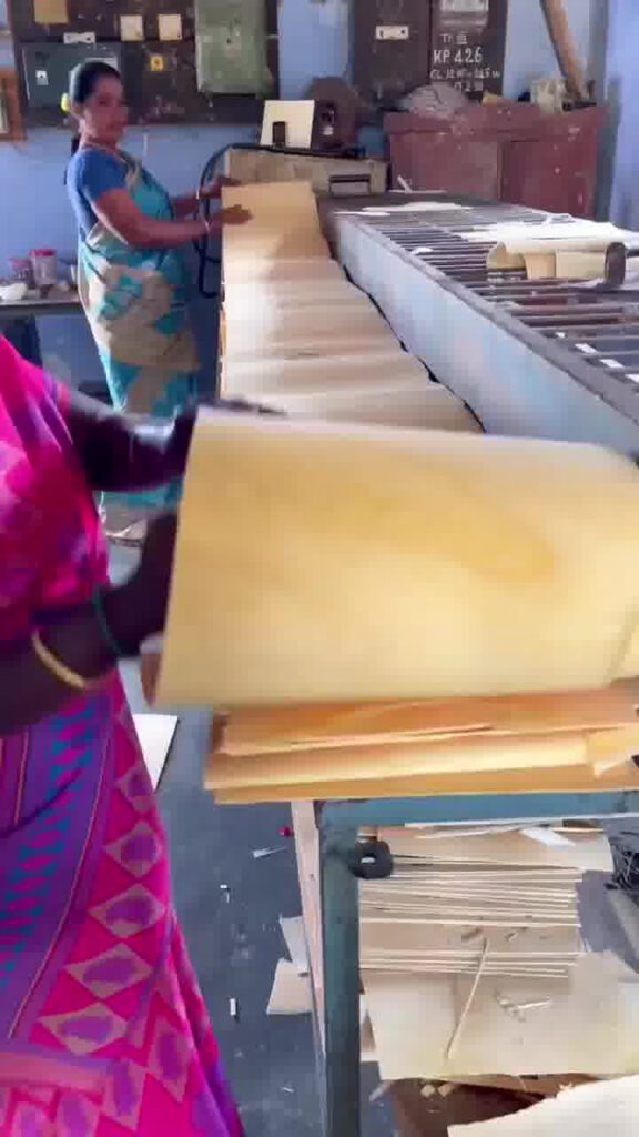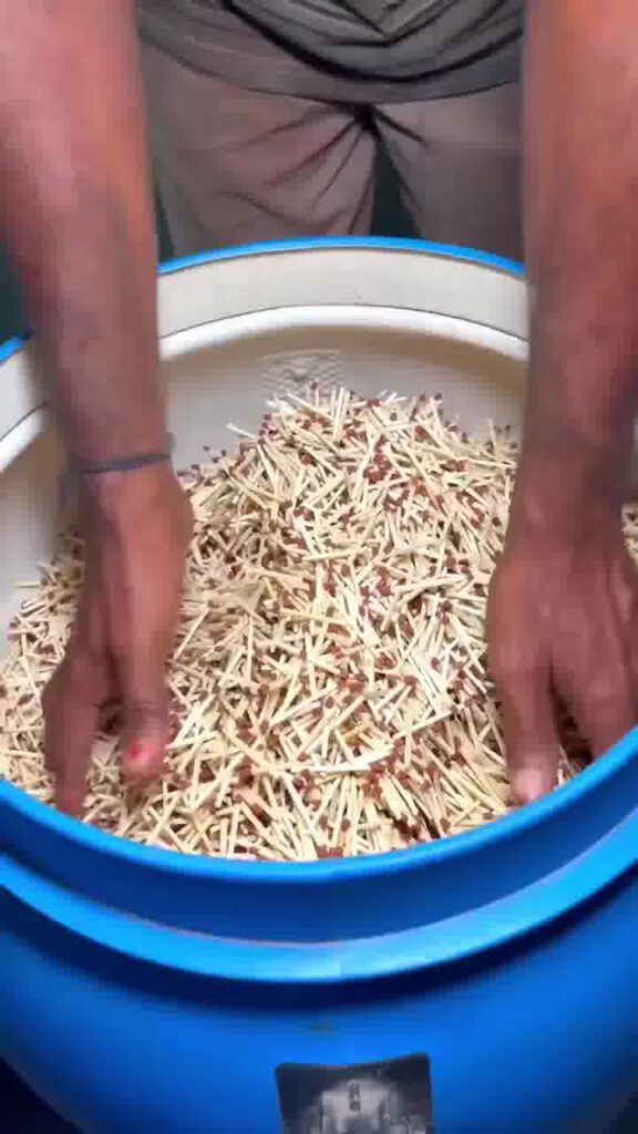 Langkah 2: Pengeringan dan Pembentukan: Setelah kayu dibelah, ia akan dikeringkan dan dipotong kepada bentuk mancis yang lebih kecil dan seragam. Proses ini kebanyakan dilakukan di kilang di mana para pekerja wanita memeriksa dan mengasingkan kayu yang telah dipotong. Tugas ini dilakukan dengan teliti untuk memastikan setiap batang kayu mempunyai kualiti yang baik dan sesuai untuk pembuatan mancis.