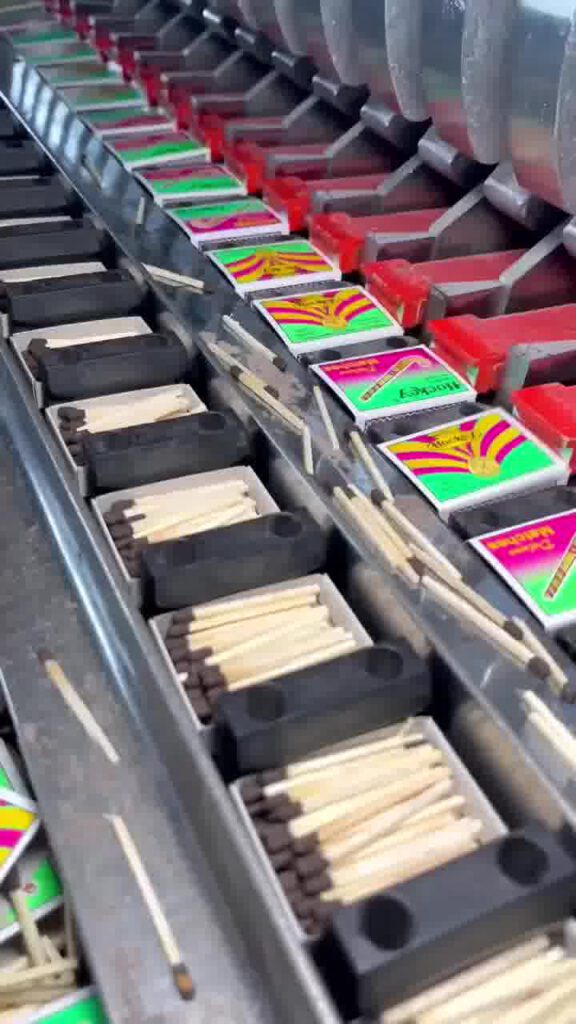 Kayu yang diproses dengan teliti dan tindak balas kimia yang berlaku setiap kali mancis digesek, menggambarkan keindahan kombinasi antara sumber alam semula jadi dan teknologi moden.