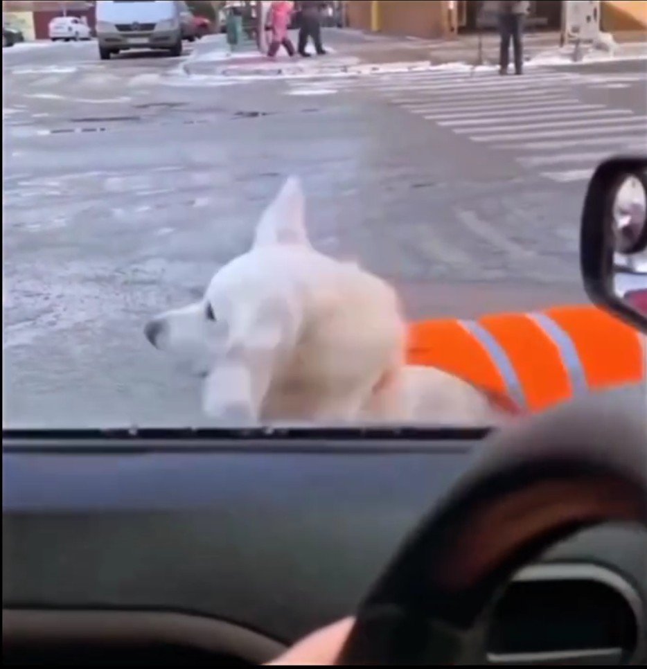Selepas yakin bahawa semua kenderaan telah berhenti, anjing itu segera berpatah balik untuk mendapatkan tuannya.