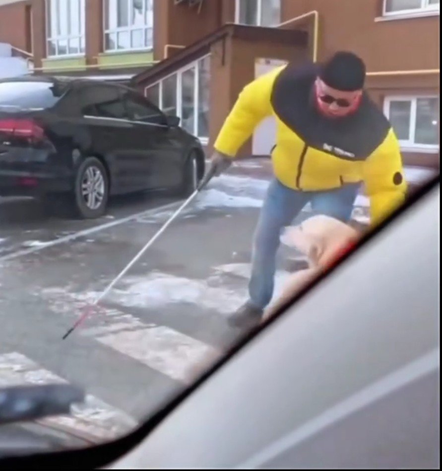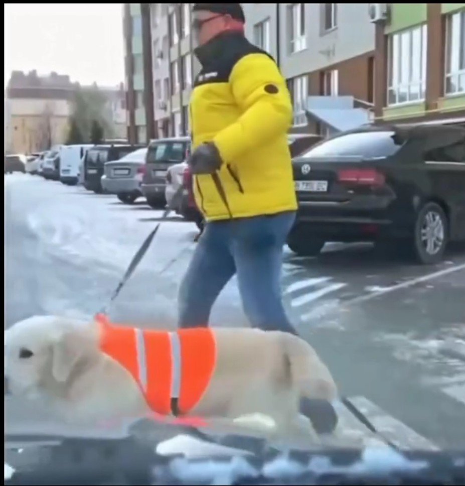Pemandangan ini memberi isyarat kepada pemandu-pemandu untuk memperlahankan kenderaan mereka.Anjing ini bukanlah sekadar haiwan peliharaan biasa, ia berperanan sebagai penunjuk jalan bagi tuannya yang buta.