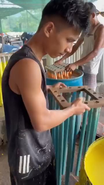 Setelah proses pewarnaan, getah yang telah diwarnai dicetak menggunakan acuan berbentuk tabung dengan pelbagai saiz diameter. Cetakan ini membentuk getah menjadi tiub panjang yang bersedia untuk dipotong menjadi gelang kecil-kecil.