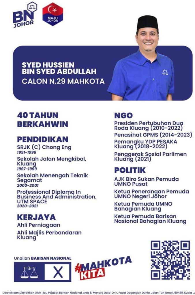 Calon BN, Syed Hussien Syed Abdullah, dianggap mempunyai faktor ‘wow’ yang boleh menarik perhatian pengundi di Mahkota. BN juga telah menumpukan usaha dengan lebih gigih untuk menyantuni setiap pengundi dan memastikan mereka mendapat sokongan yang diperlukan.