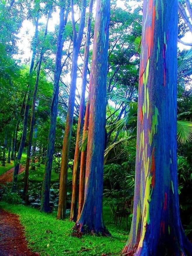 Keindahan utama pokok ini terletak pada batangnya yang berwarna-warni. Berbeza dengan pokok lain, kulit batang Eucalyptus Pelangi mengelupas secara semula jadi dalam potongan panjang, memperlihatkan lapisan kulit baru berwarna hijau terang. Seiring waktu, lapisan ini berubah warna menjadi biru, ungu, oren, dan merah marun. Proses perubahan warna ini berlangsung sepanjang tahun, menjadikan pokok ini sentiasa kelihatan berbeza dan penuh warna.