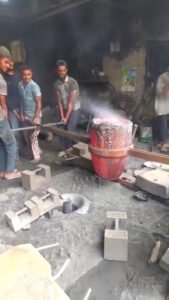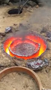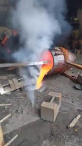 Setelah acuan pasir siap, logam dilebur dalam relau pada suhu tinggi. Proses ini memerlukan kawalan suhu yang teliti untuk memastikan kualiti logam kekal optimum.
