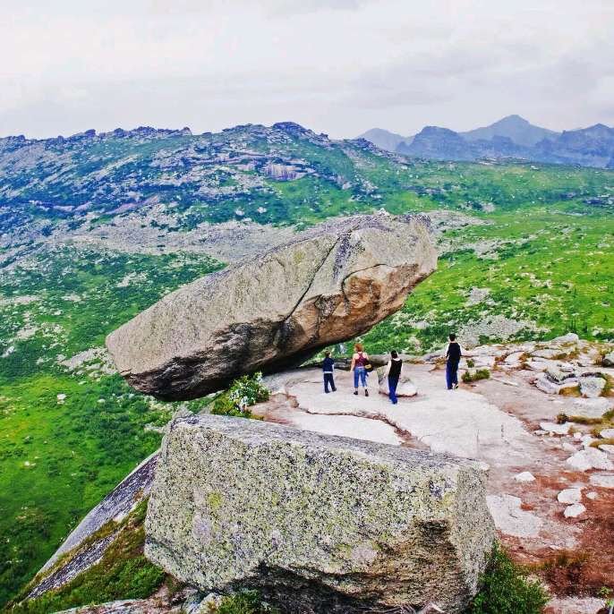 Taman Alam Semula Jadi Ergaki terkenal dengan pemandangan pergunungan yang menakjubkan, tasik jernih, dan formasi batu yang unik. Batu Gantung, seberat 500 tan, menjadi salah satu tarikan utama bagi pelancong. Gambar-gambar yang menunjukkan batu ini seolah-olah terapung di ketinggian 1,000 meter di atas Tasik Raduzhnoye sering dikongsi di media sosial, mencetuskan rasa ingin tahu dan kekaguman.