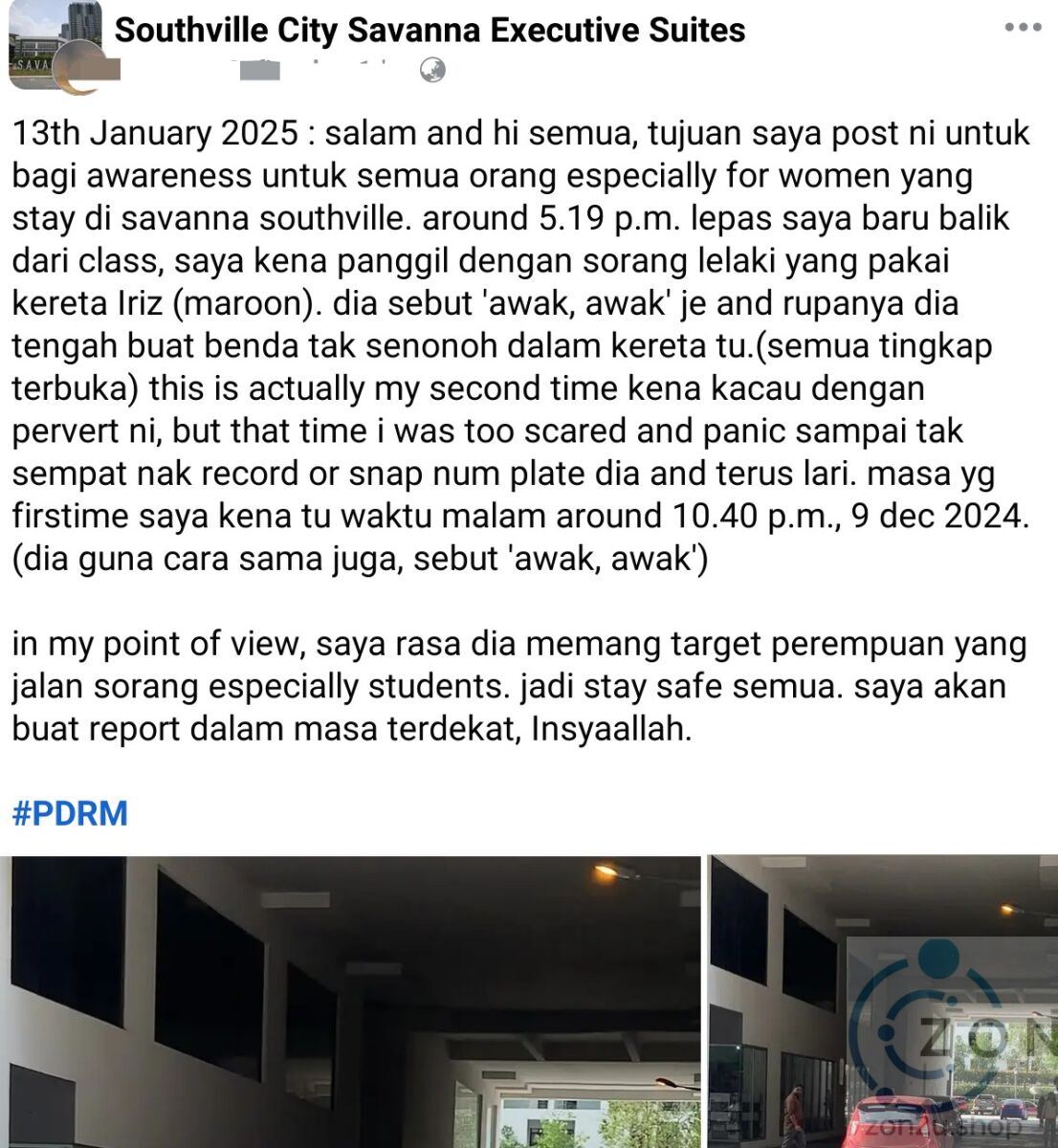 Pada 13 Januari 2025, satu kejadian yang membimbangkan berlaku di kawasan Savanna Southville City, Sepang. Seorang wanita yang baru pulang dari kelas telah diganggu oleh seorang lelaki yang berada di dalam kereta Proton Iriz berwarna maroon. Lelaki tersebut telah memanggilnya dan mendapati dia sedang melakukan perbuatan tidak senonoh di dalam keretanya, dengan semua tingkap terbuka. Kejadian ini bukanlah kali pertama wanita tersebut menjadi mangsa gangguan daripada lelaki yang sama.