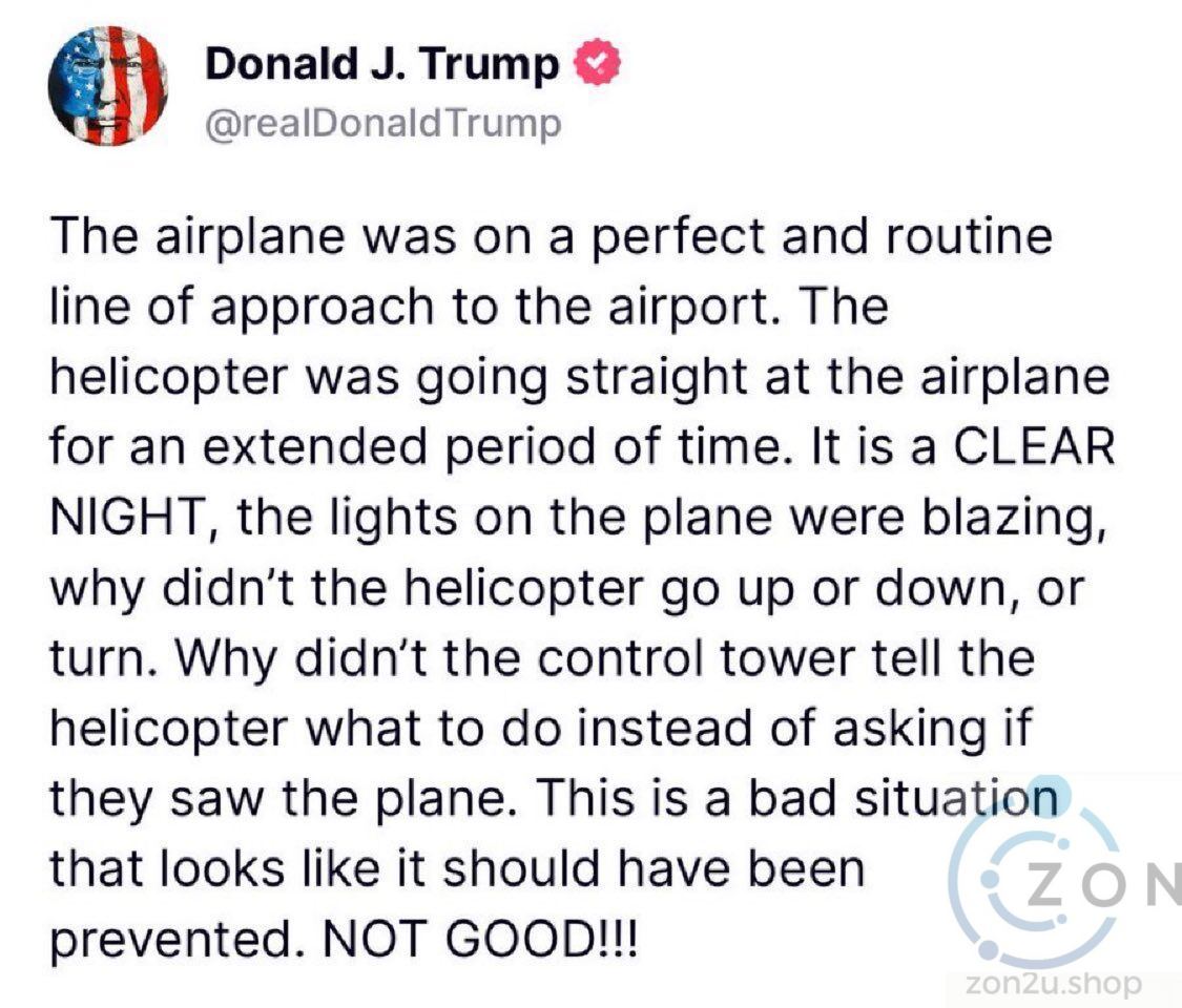 Presiden Donald Trump menyalahkan kru helikopter dan pengawal trafik udara menerusi Truth Social. Rakaman komunikasi menunjukkan usaha untuk berhubung dengan helikopter sebelum perlanggaran.