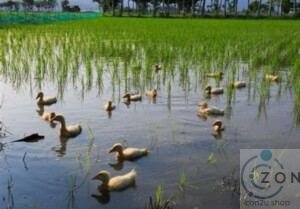 Di Jepun, teknik ini telah lama diamalkan di mana petani melepaskan itik ke dalam sawah untuk mengawal populasi serangga dan rumpai. Itik-itik ini berenang di antara barisan padi, memakan serangga dan rumpai tanpa merosakkan tanaman. Selain itu, pergerakan itik membantu mengoksigenkan air dan tanah, yang seterusnya meningkatkan pertumbuhan padi.
