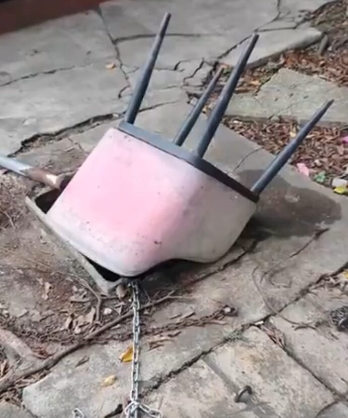 Insiden mengejutkan itu dirakam dalam video tular di TikTok yang memperlihatkan mangsa tiba-tiba ‘hilang’ dari pandangan apabila memijak penutup lubang tersebut.