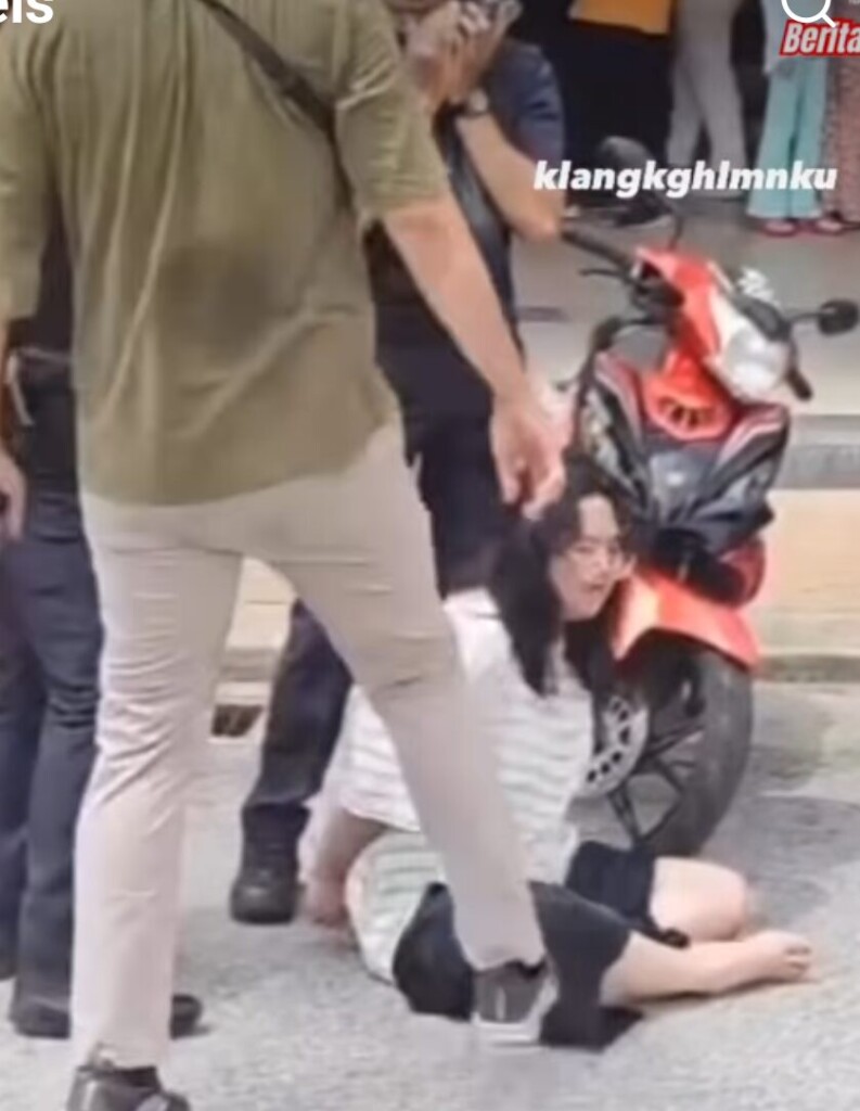 Dalam salah satu rakaman video, kelihatan seorang individu menendang wanita berkenaan walaupun beliau sudah berada dalam kawalan polis. Tindakan ini dianggap kurang ajar dan menunjukkan sikap tidak menghormati agensi penguatkuasa. Ia juga boleh mengganggu proses siasatan serta mencerminkan kegagalan mengawal emosi ketika berhadapan dengan insiden jenayah.