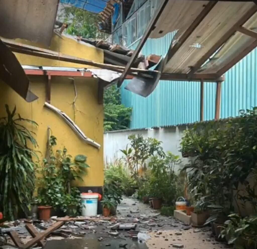 Mangsa yang berada di dalam biliknya ketika kejadian telah menerima rawatan di hospital dan kini dalam keadaan stabil. Bumbung rumahnya mengalami kerosakan akibat bahan binaan yang jatuh.