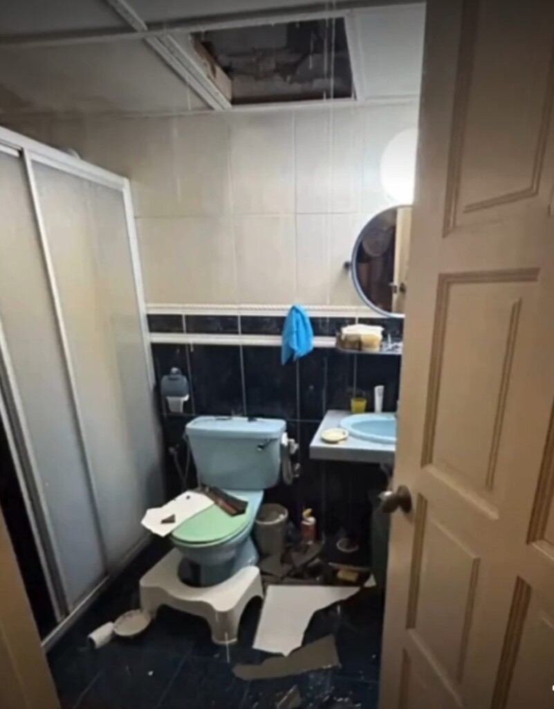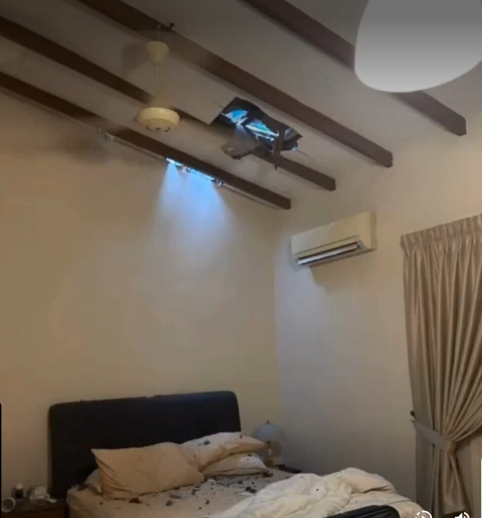 Kejadian ini berlaku apabila jubin berkenaan berlanggar dengan penghadang di aras tiga, menyebabkan beberapa keping jubin terpelanting ke arah rumah di Jalan Setiakasih 6, Bukit Damansara.