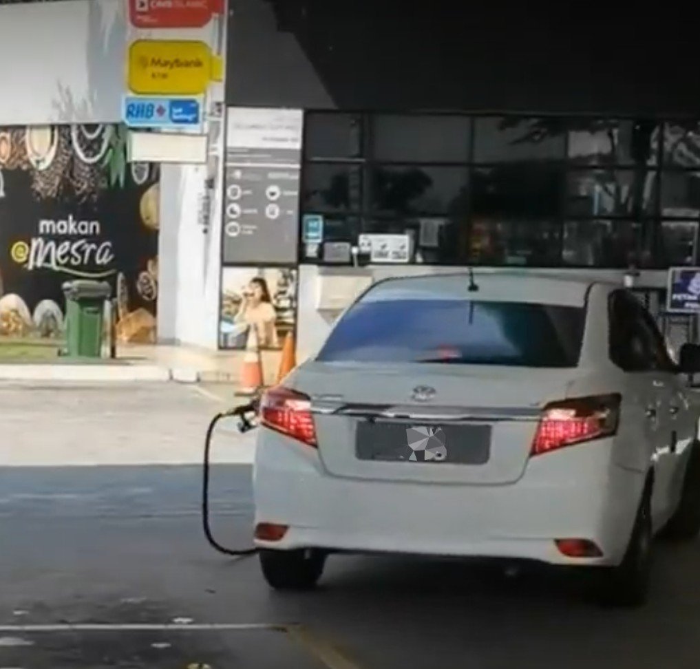 Video dalam catatan X yang dikongsi (daripada pengguna @Cool_Wannabe82) menggambarkan satu insiden di stesen minyak Petronas di Malaysia, di mana sebuah kereta Toyota Vios putih memandu pergi selepas mengisi minyak tanpa mengeluarkan muncung minyak dari tangkinya. Hos meregang, tercabut dari pam, dan kelihatan putus atau tumpah minyak sedikit, menyebabkan pekerja stesen bergegas ke situasi itu. Tiada kecederaan atau kebakaran kelihatan dalam rakaman, yang berasal dari video TikTok oleh @kinky_sharyo.