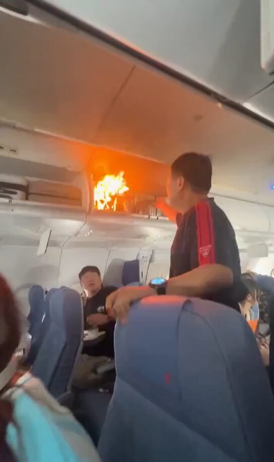 Another view of the lithium battery fire that caused Air China flight CA139 from Hangzhou to Incheon to make an emergency landing in Shanghai.