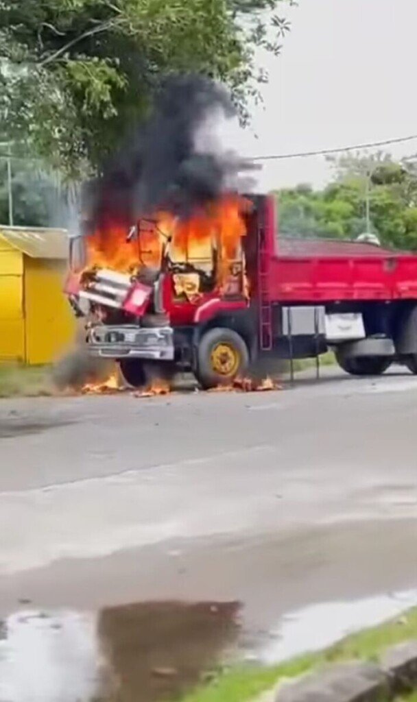 Lelaki bakar lori miliknya untuk elak disita JPJ. Kejadian berlaku pada 22 Oktober 2025, jam 1.30 tengah hari di hadapan Sekolah Kebangsaan Padang Air, Kuala Nerus.