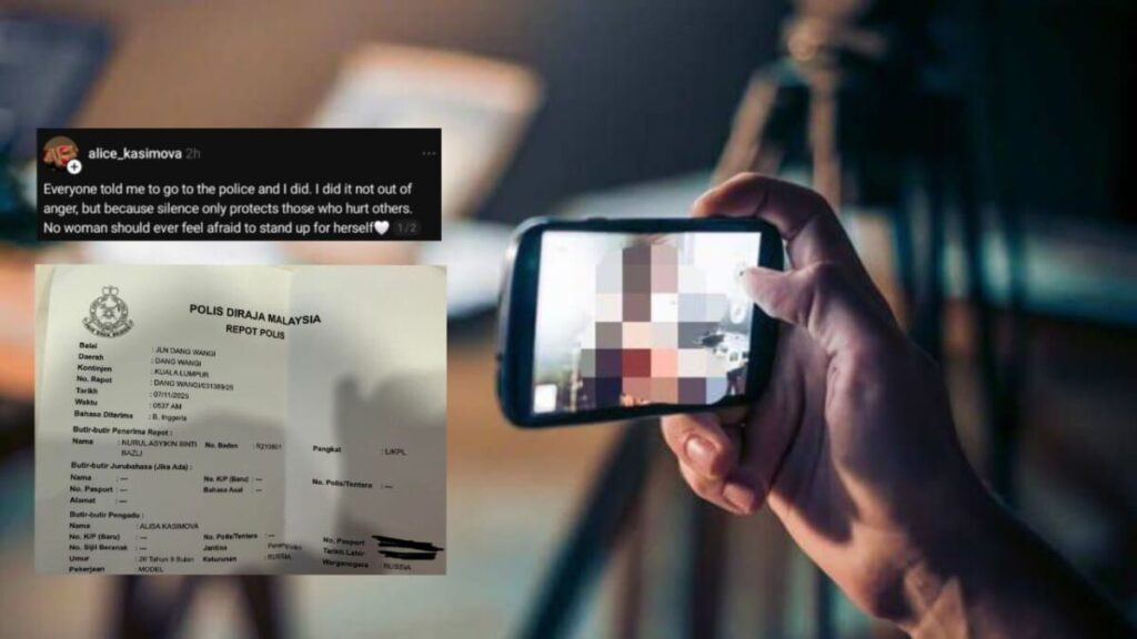 Alice Kasimova, wanita warga Russia, membuat laporan polis selepas dirinya dirakam tanpa izin ketika siaran langsung seorang pempengaruh lelaki di restoran. Rakaman tersebut dijadikan bahan sembang lucah oleh pempengaruh berkenaan.