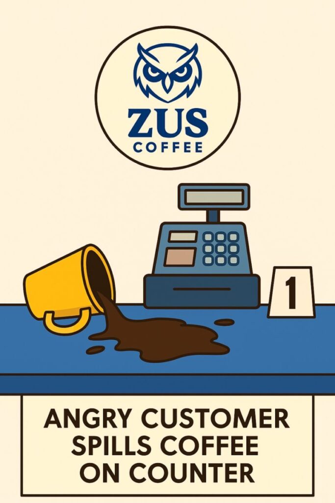 Dalam keadaan marah, pelancong tersebut membalikkan cawan kopi ke atas kaunter, menyebabkan kekecohan dan rasa tidak selamat dalam premis.