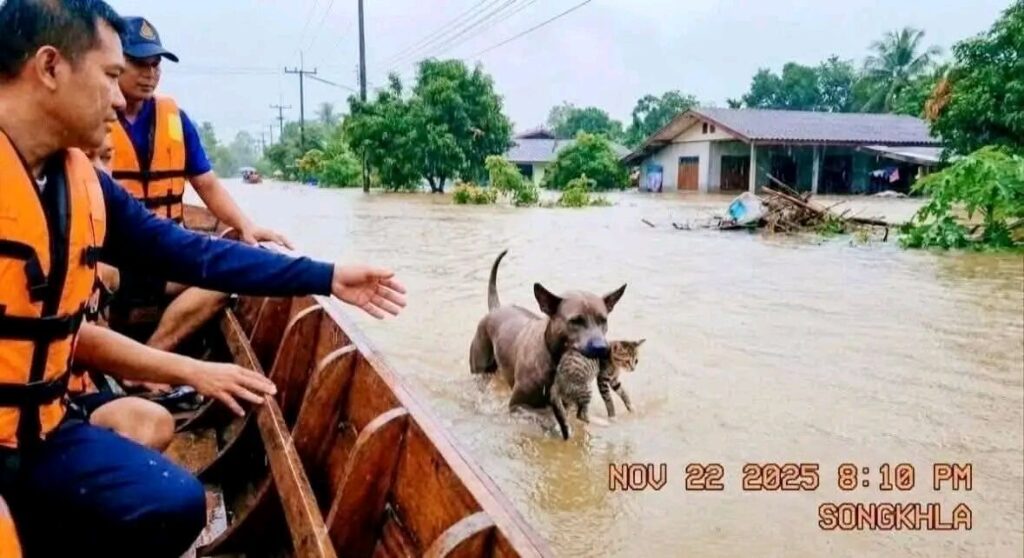 Baru-baru ini, satu siri imej tular menunjukkan seekor anjing membawa kucing dalam mulutnya ketika banjir di Songkhla, Thailand. Ramai netizen Malaysia tersentuh dan berkongsi imej tersebut, menyangka ia adalah kejadian sebenar.