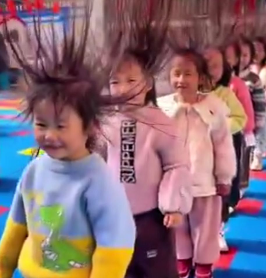In a Chinese school, two teachers explained static electricity to students in a fun and engaging way.