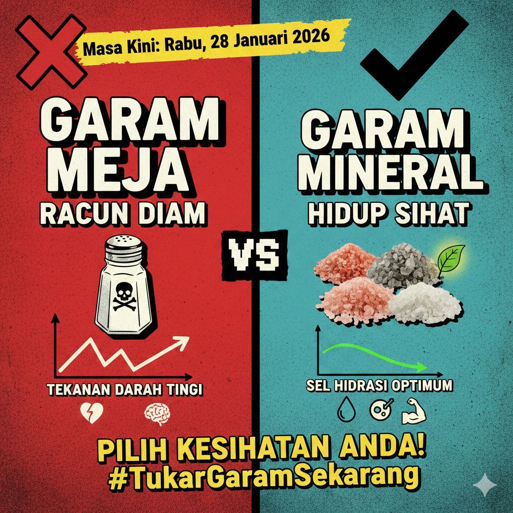 Hentikan penggunaan garam meja dalam masakan harian. Tukar kepada garam mineral sepenuhnya demi masa depan kesihatan keluarga anda.