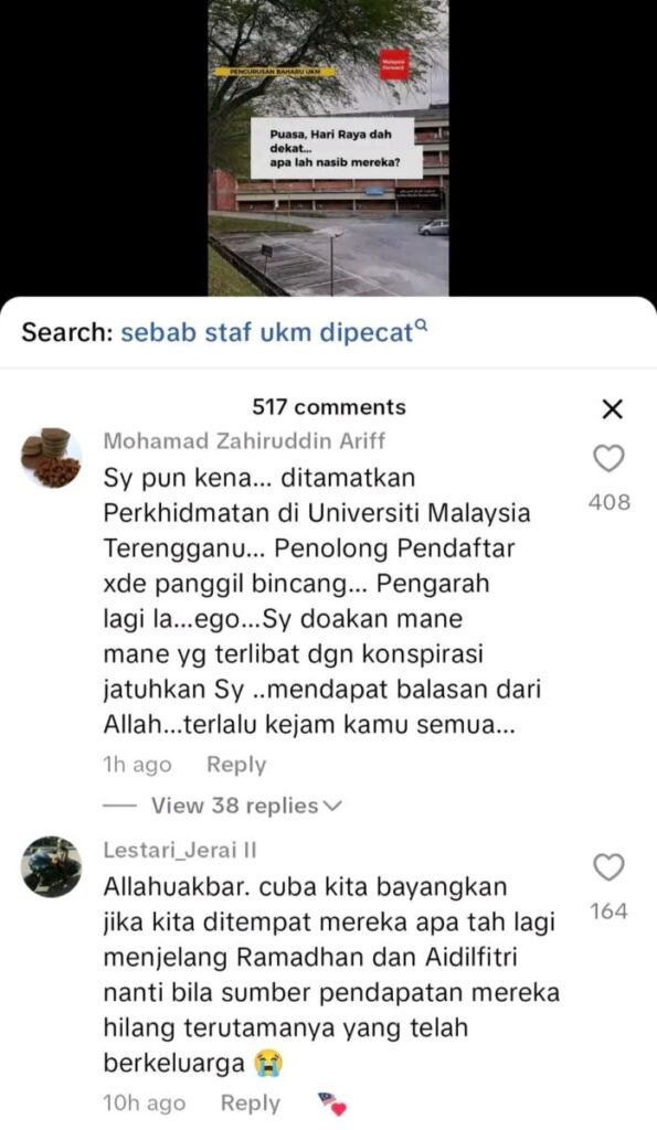 Jika benar, ini menimbulkan persoalan pematuhan prosedur undang-undang buruh dan peraturan IPTA. Ramai netizen meluahkan simpati mendalam: hilang punca pendapatan tepat masa persiapan Ramadan & Hari Raya – menguji kesabaran mental & fizikal. 🕯️