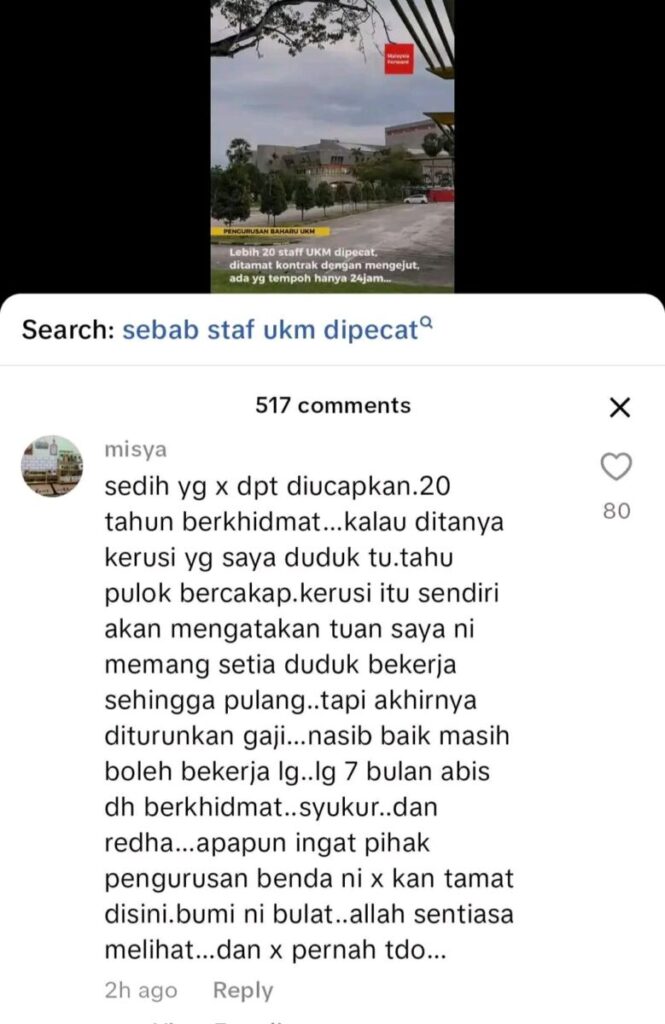 Kita berharap isu ini diselesaikan secara adil dan telus supaya kakitangan mendapat hak mereka, dan pentadbiran UKM kekal harmoni. Semoga Ramadan tahun ini membawa ketenangan, keadilan, serta rezeki diganti lebih baik bagi semua yang terjejas.