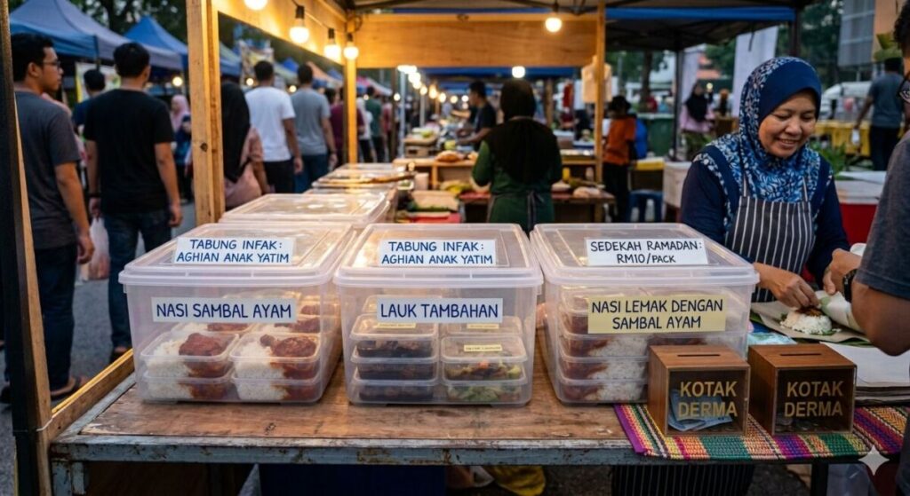 Trend “Slot Infak” mula meledak di media sosial. Peniaga menawarkan pakej “Beli + Infak” serendah RM5 untuk agihan juadah kepada asnaf.