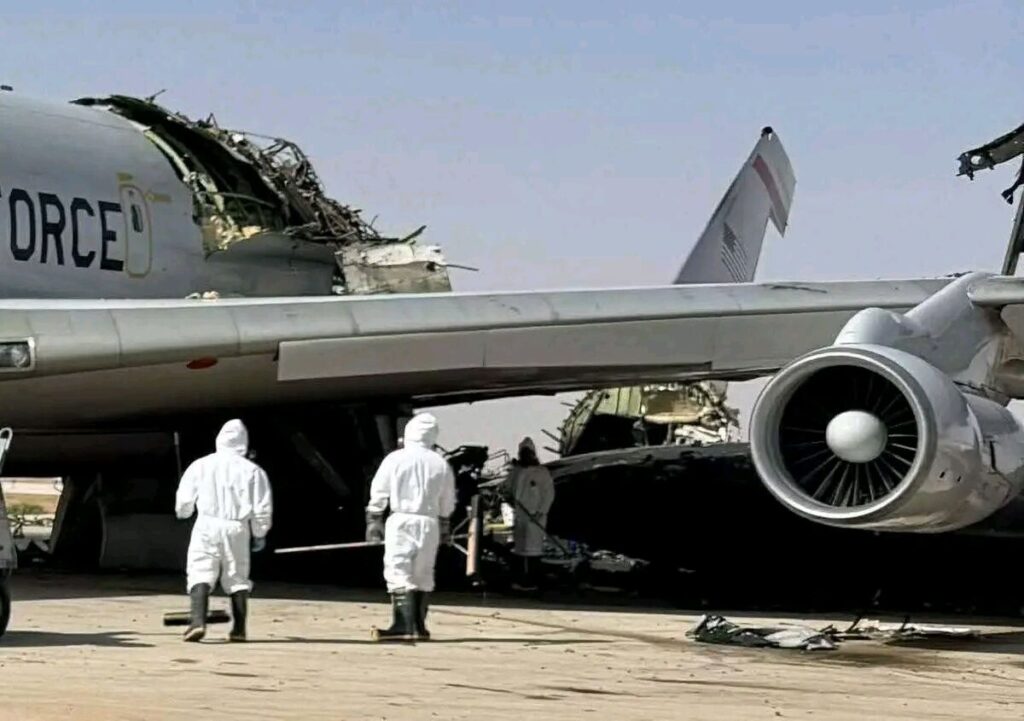 Sputnik mendedahkan video bangkai pesawat 81-0005 di Prince Sultan Air Base. Dron dan peluru berpandu Iran berjaya menembusi pertahanan Patriot, menghancurkan radar dome AWACS semasa ia sedang mengisi minyak di darat.
