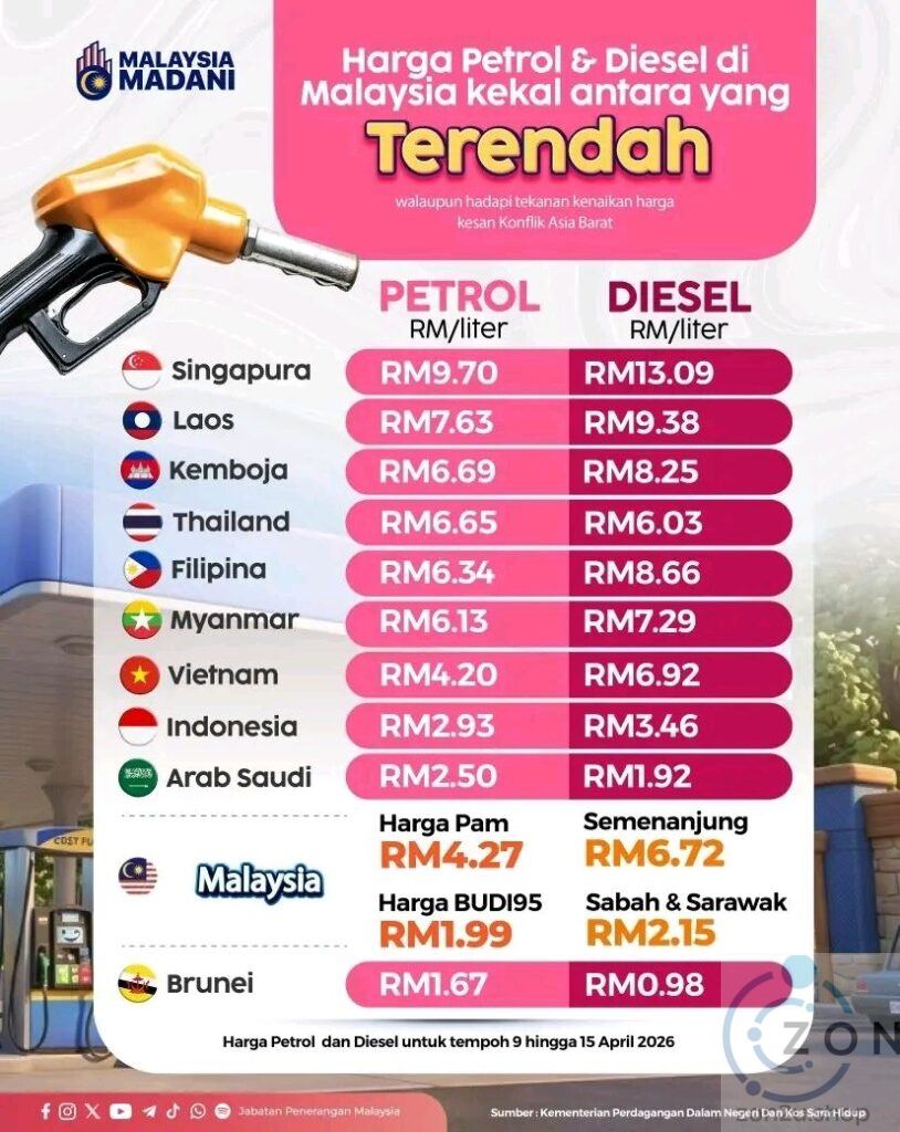 Malaysia terus mengekalkan kedudukan sebagai antara negara dengan harga petrol dan diesel paling rendah di rantau Asia Tenggara walaupun berdepan tekanan kenaikan harga global.