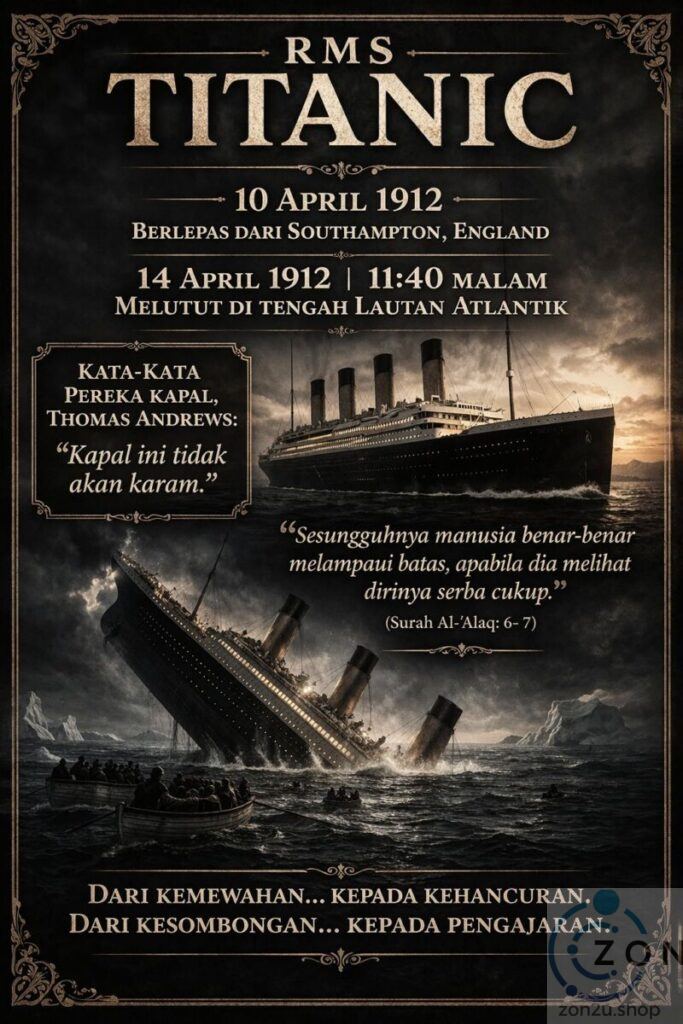 👉 Titanic tenggelam, tetapi pengajarannya kekal: nikmat bukan untuk dibanggakan sehingga melupakan risiko.
